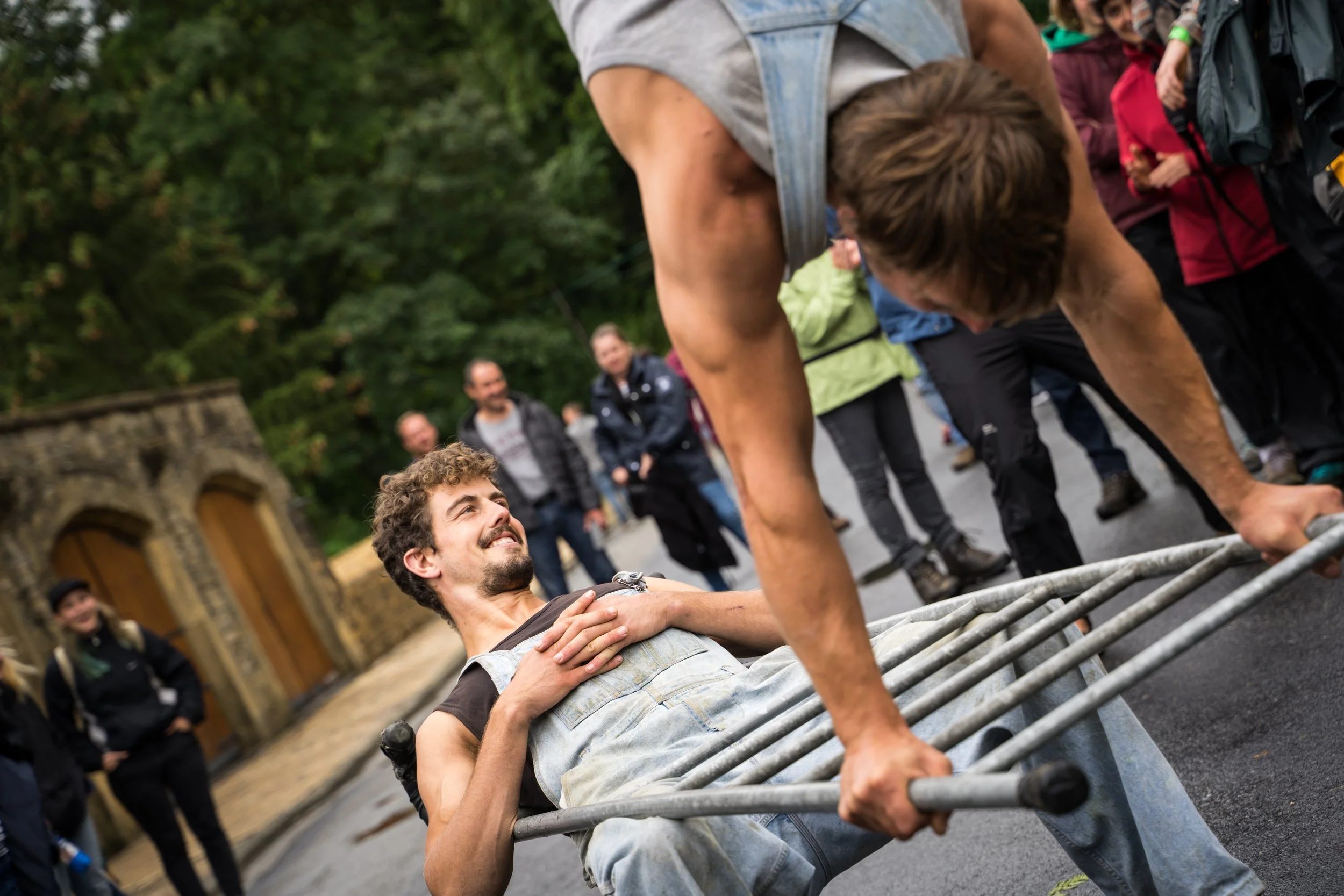 LUDO & ARSÈNE is an acrobatic duo that moves across the area, improvising the unexpected with their ladder.