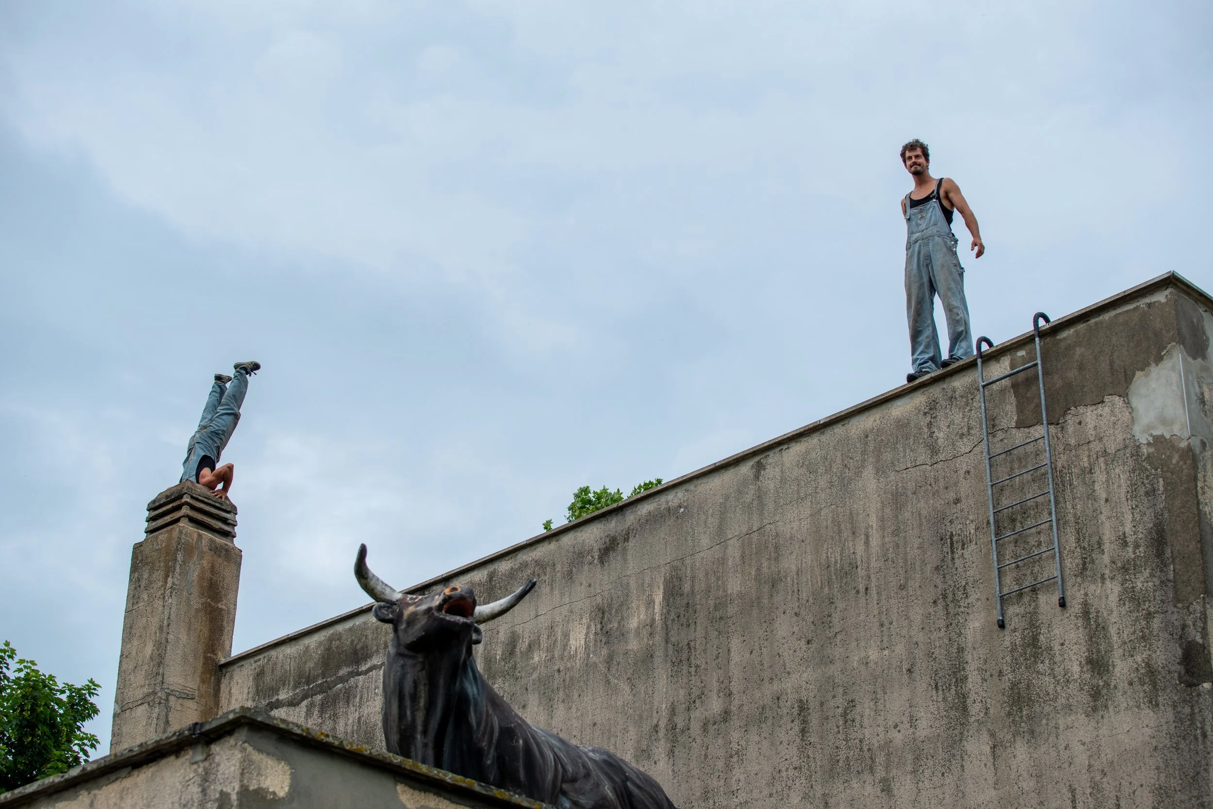Recognisable by their overalls, ladder and zero fear of heights, the duo turns everyday encounters into moments of physical play. Rather than solving practical problems, LUDO & ARSÈNE prefer sharing their acrobatics with anyone they meet along the way.